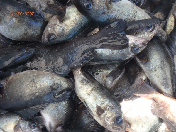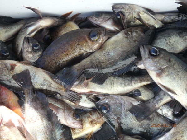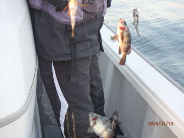 | 時化が続いて久し振りに出船、メバル好調で皆さん調子良く釣られました。 |
